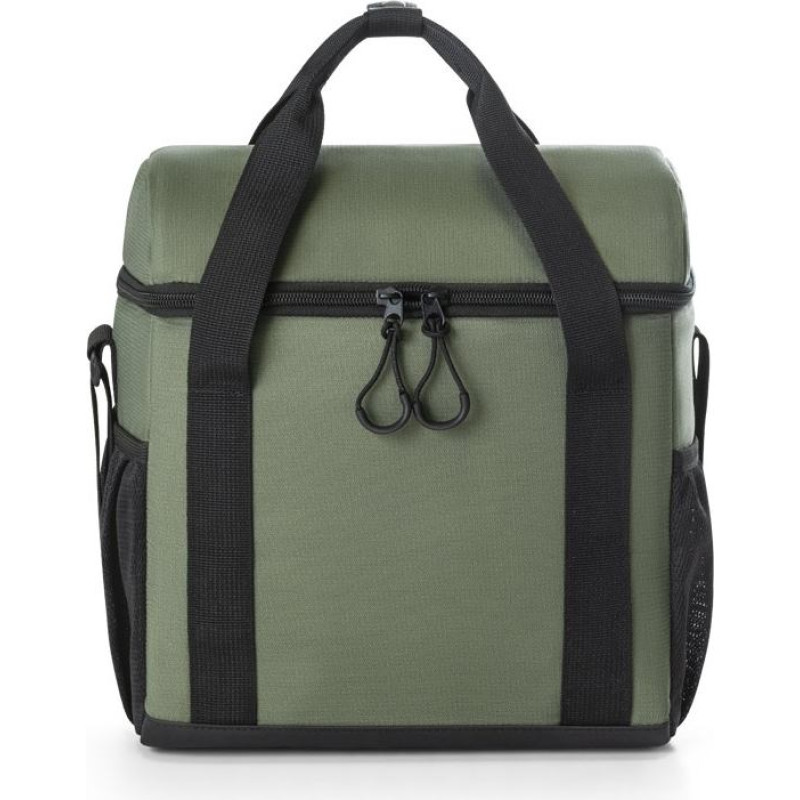 Padded cooler bag in recycled polyester 600D ripstop. Composed of 1 large main compartment with double zip fastening on both sides and 2 side mesh pockets for small items. The PEVA-lined interior ensures good thermal insulation, allowing the cold to be kept in for longer and sanitised. The robust materials give it strength and durability, designed for everyday needs. Capacity up to 11 L. 260 x 290 x 160 mm