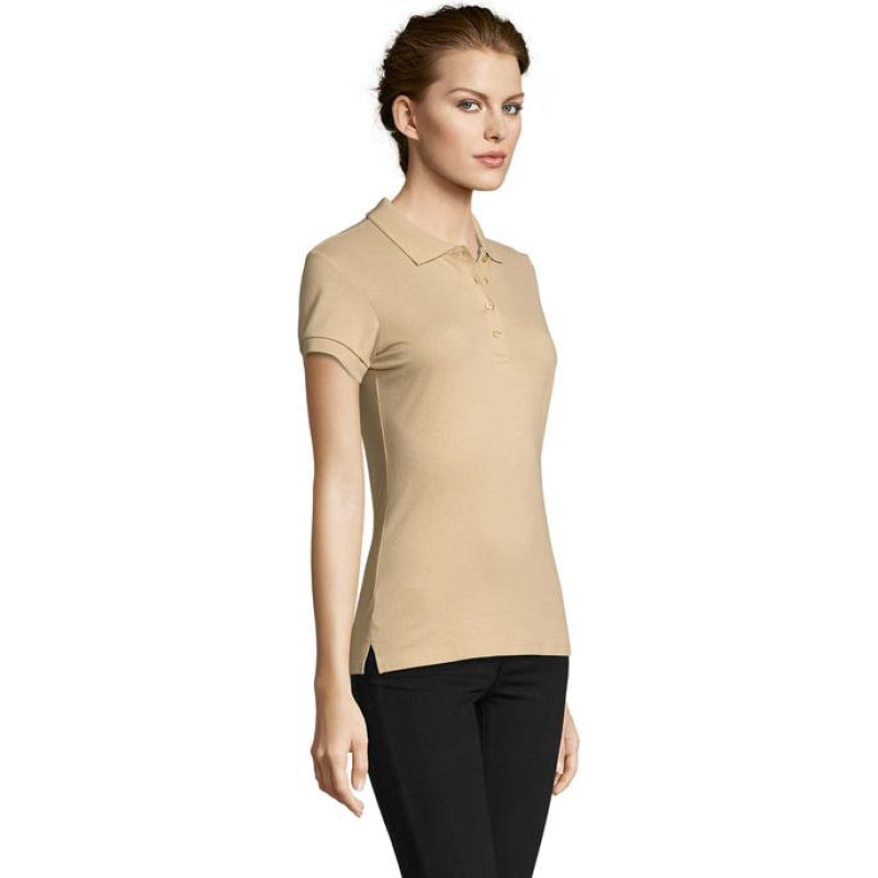 SOL'S PEOPLE, women's polo shirt, 100% combed ringspun cotton piqué 210, rib collar and cuffs, reinforcing tape on neck, short sleeves, fitted cut, tone on tone 4 button placket, straight hem with side slits, cut and sewn, (1) grey melange : 85 % cotton / 15 % viscose. About sizes matching, please refer to the size chart in the product documentation section.