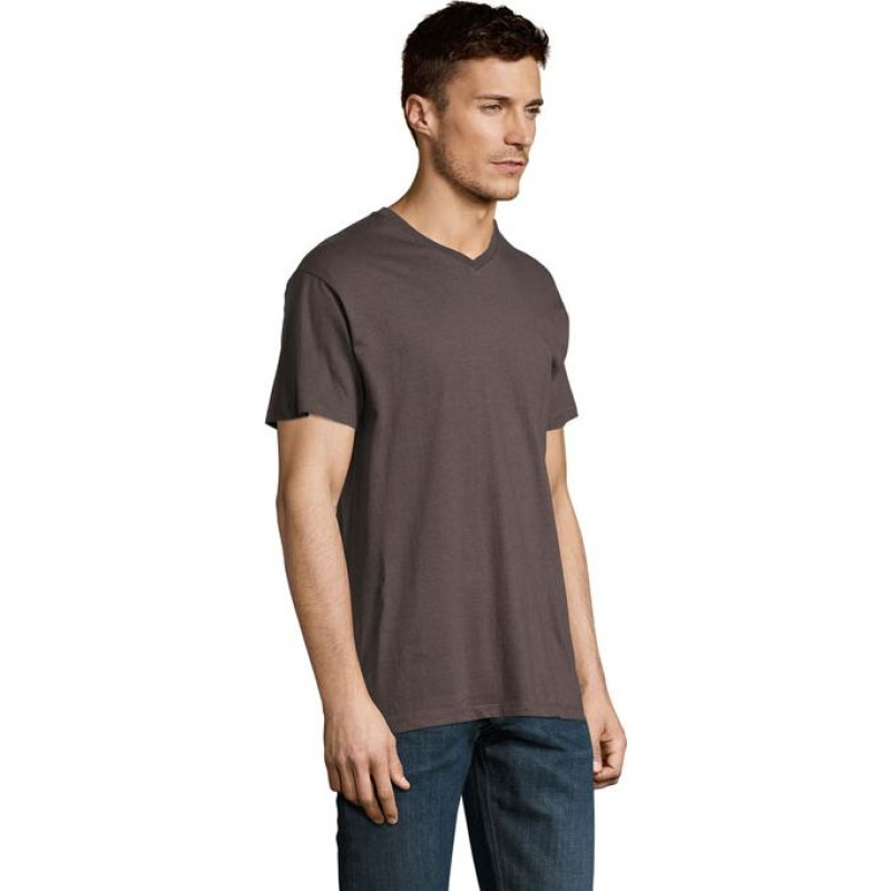 SOL'S VICTORY, men's v-neck t-shirt, 100% semi-combed ringspun cotton jersey 150, reinforcing tape on neck, short sleeves, 2 rib thicknesses at collar, tubular, (1) ash : 98 % cotton / 2 % viscose, (2) grey melange : 85 % cotton / 15 % viscose. About sizes matching, please refer to the size chart in the product documentation section.