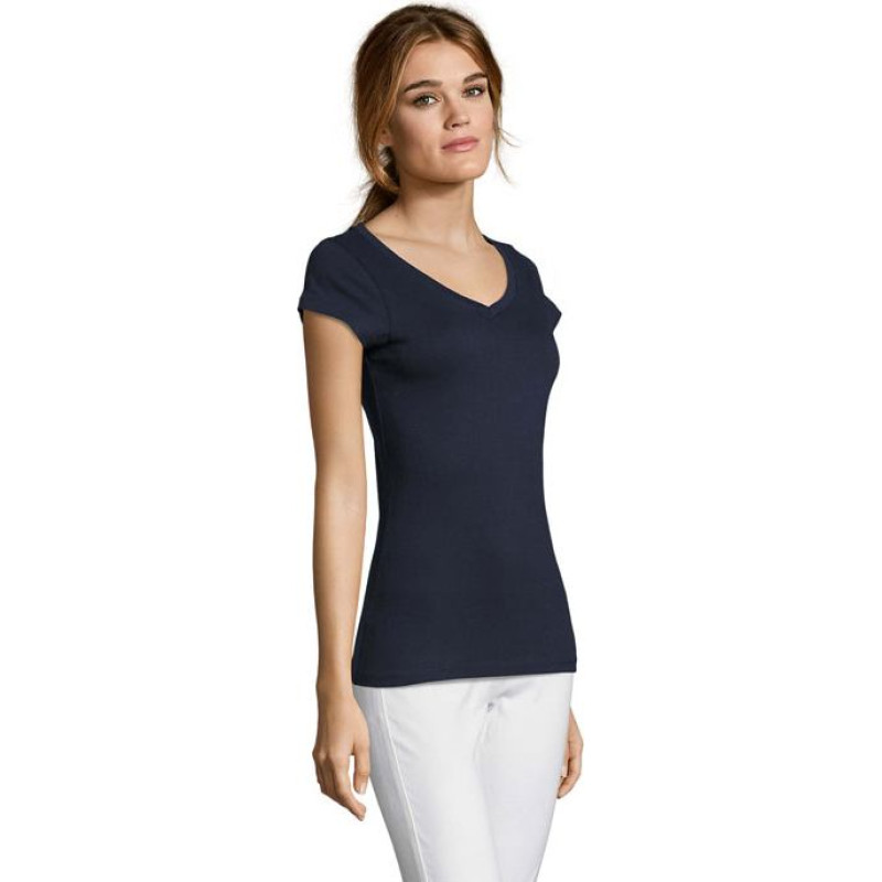 SOL'S MOON, women's v-neck t-shirt, 100% semi-combed ringspun cotton jersey 150, reinforcing tape on neck, short sleeves, fitted cut, v-neck with rib edges, cut and sewn. About sizes matching, please refer to the size chart in the product documentation section.
